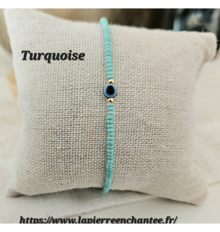 Bracelet en Turquoise et Œil porte bonheur .