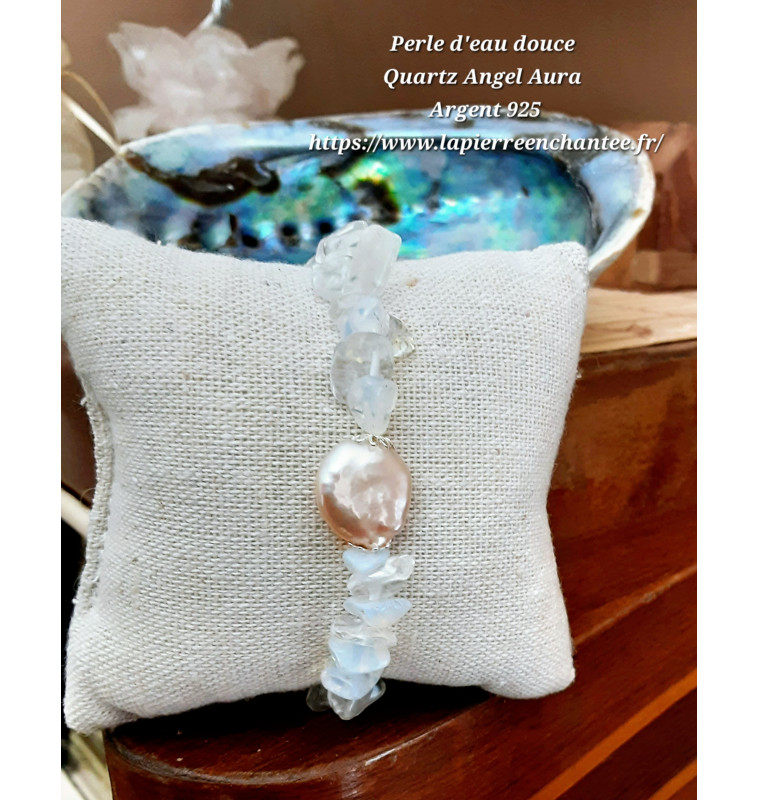 Bracelet perle d'eau douce et Quartz Angel Aura, Argent 925 .