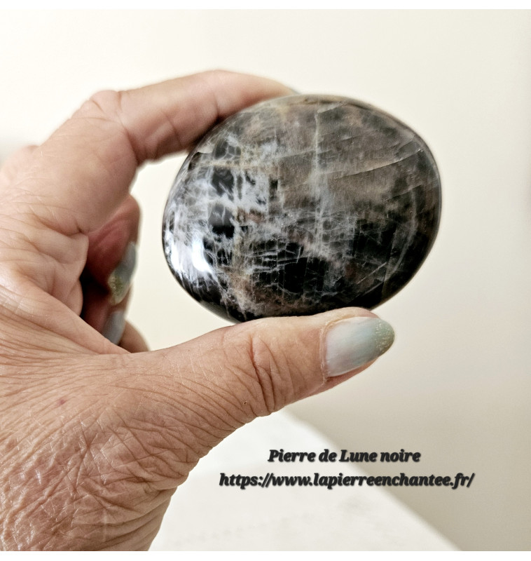 La pierre de lune noire est une variété rare et mystérieuse de la pierre de lune, qui est généralement associée à des propriétés uniques en lithothérapie.