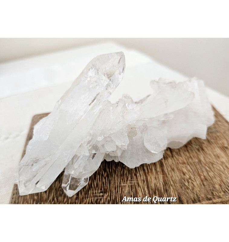 Les amas de Quartz et les pointes de Quartz sont des outils couramment utilisés en lithothérapie pour leurs propriétés purificatrices, le Quartz peut agir comme un amplificateur des énergies positives, aider à dissiper les énergies négatives et favoriser l'harmonie et l'équilibre. Les amas de Quartz, en raison de leur forme et de leur concentration de cristaux, sont souvent utilisés pour purifier et recharger d'autres cristaux ou objets énergétiques. Ils peuvent également être placés dans un espace pour aider à clarifier l'énergie environnante.