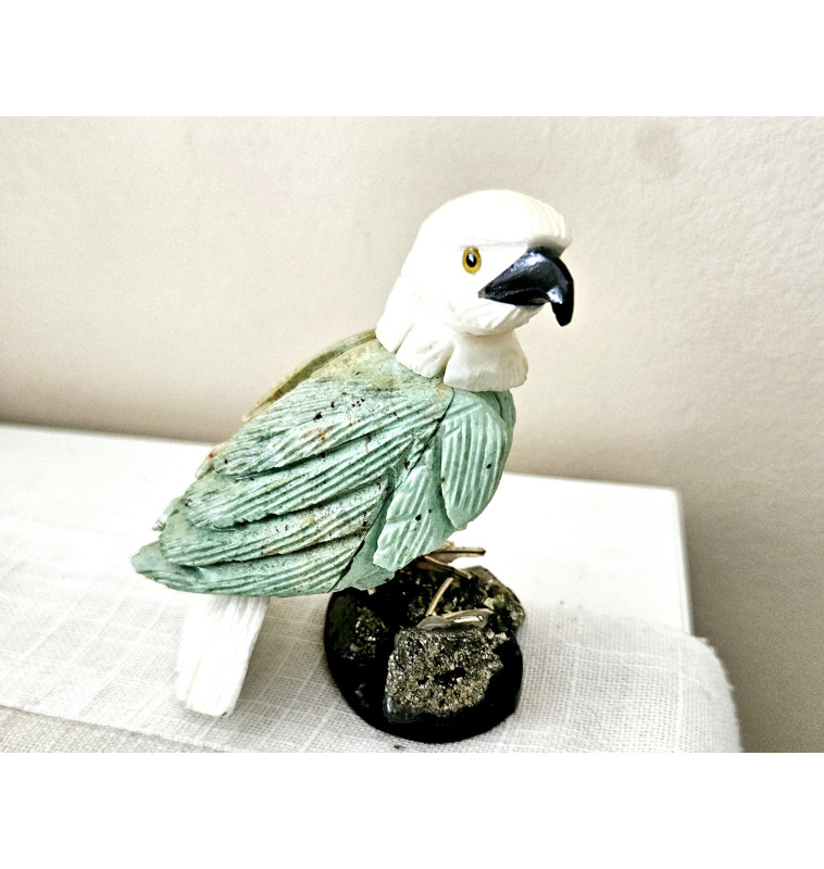 **Équilibre Énergétique** : La combinaison de la calcite et de la pyrite dans un oiseau peut apporter une harmonie entre le bien-être émotionnel et la protection énergétique.
