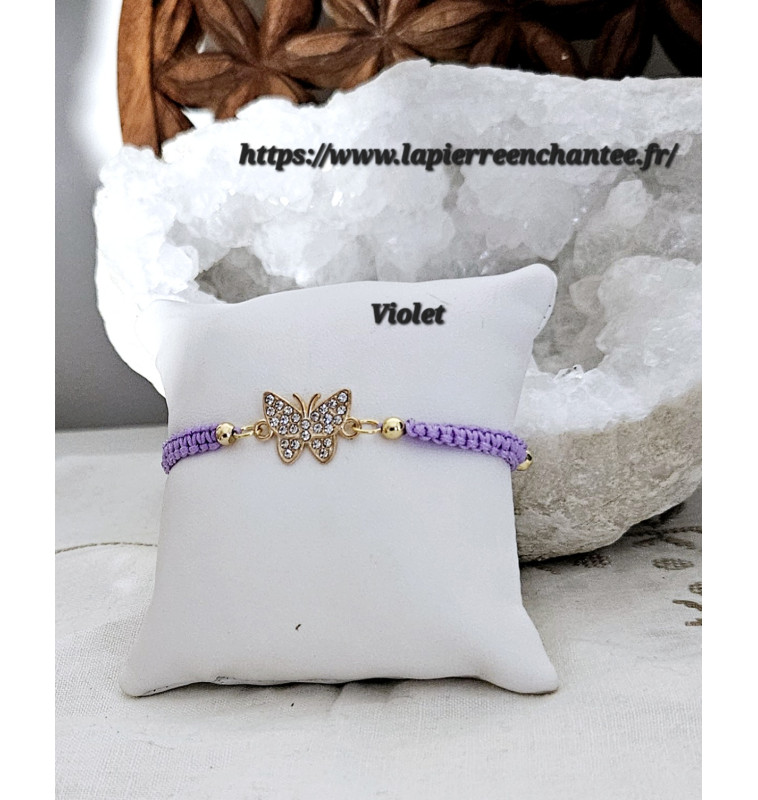 Bracelets ajustable en macramé et papillon en strass ,Noir ou Violet.