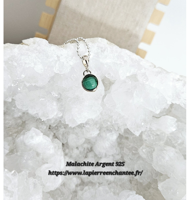 Un pendentif en malachite serti en argent massif 925 est un bijou raffiné et puissant en lithothérapie, souvent associé à la guérison, à l'équilibre émotionnel et à la protection.