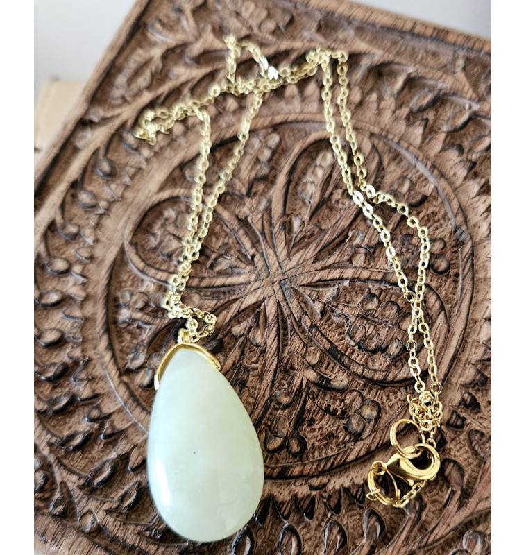 Pendentif en Jade forme goutte, chaîne dorée.