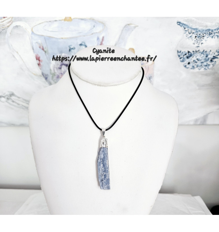 Pendentif en Cyanite brute, cordon noir réglable offert .