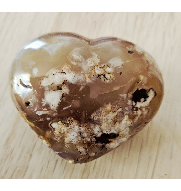 Offrez ou offrez-vous une Agate Fleur en forme de cœur, une pierre naturelle d’exception provenant de Madagascar, taillée et polie avec soin.