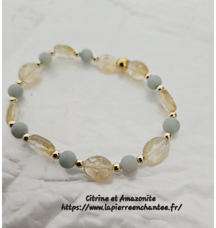 Bracelet en Citrine et Amazonite,bijou bien-être pour femme, finitions dorées.