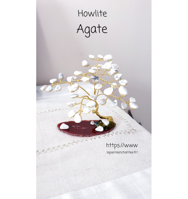 Arbre de vie en Howlite sur Agate.