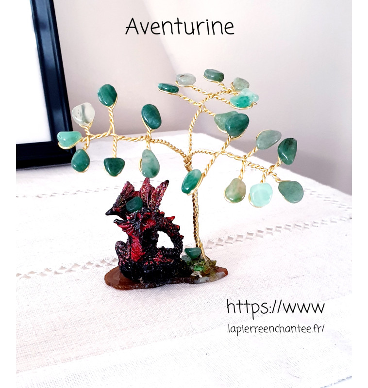 Arbre de vie en Aventurine et son Dragon sur Agate .
