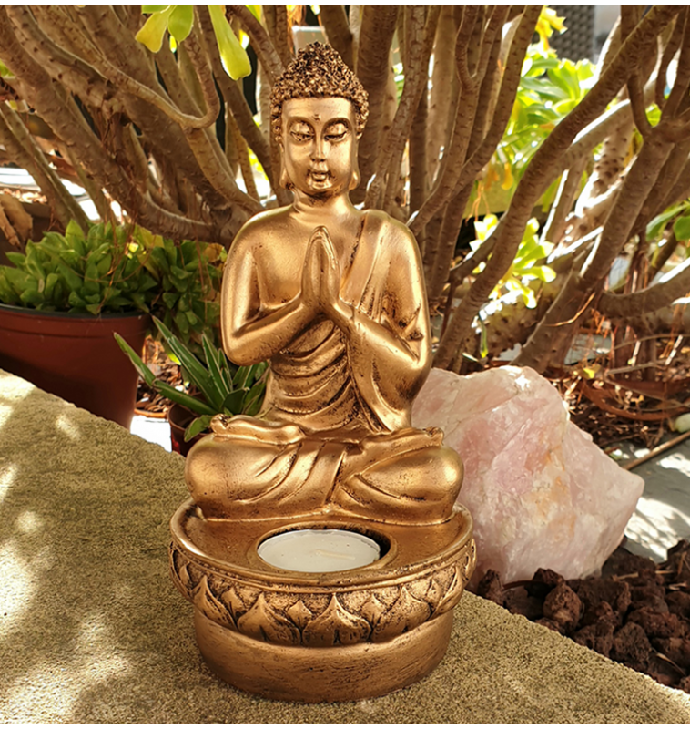 Bouddha doré en résine et sa bougie