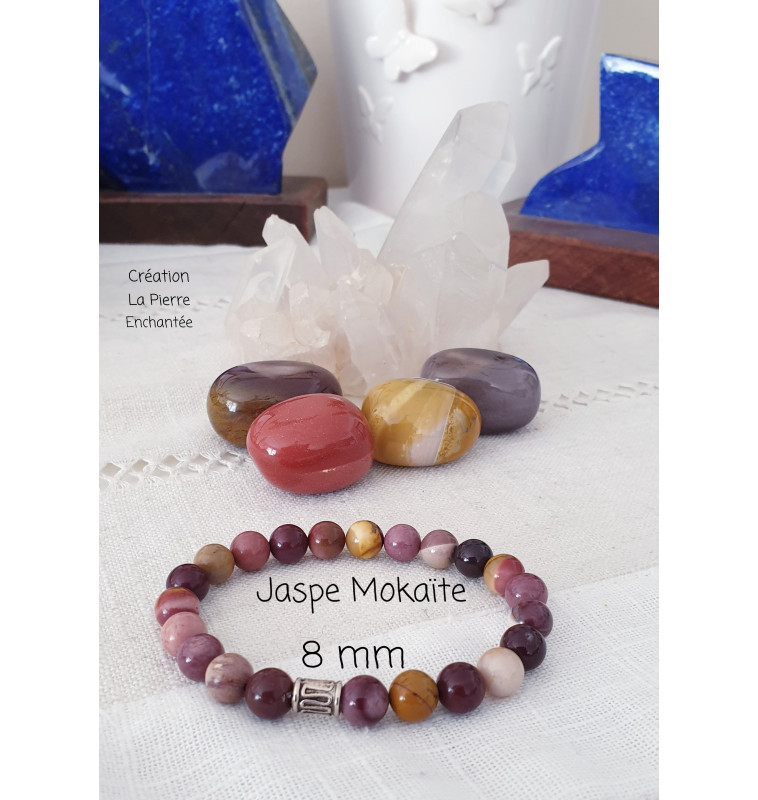 Jaspe Mokaïte , bracelet 8 mm , finitions argentées.