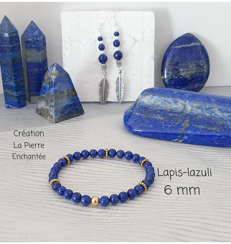 Lapis-lazuli, bracelet 6 mm , finitions dorées.