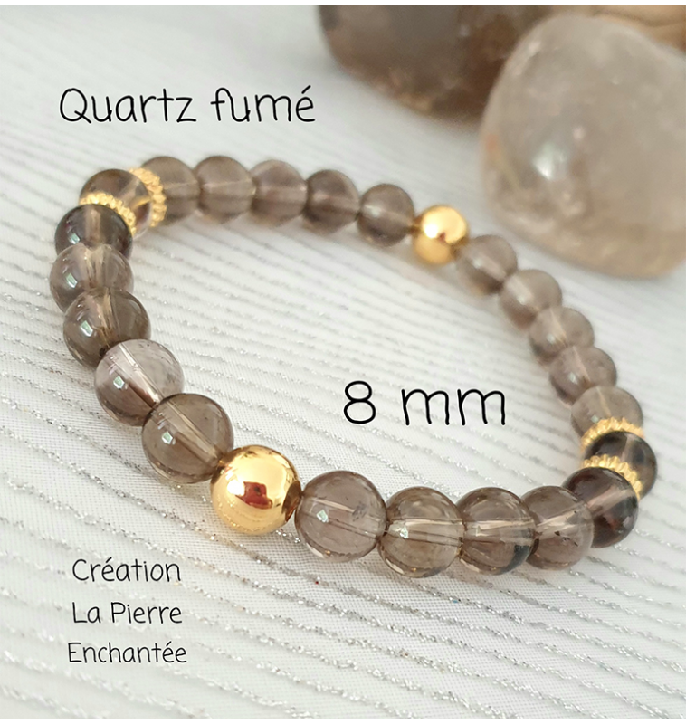 Quartz fumé , bracelet 8 mm , finitions dorées.