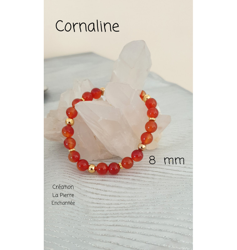 Cornaline, bracelet 8 mm , finitions dorées.