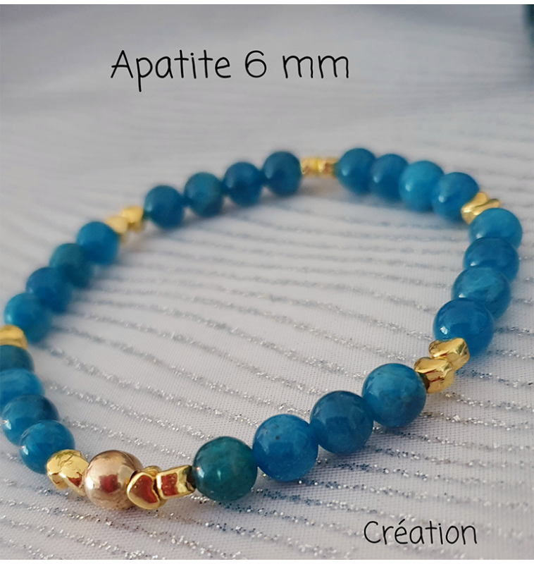 Un bijou chic et raffiné , bracelet en Apatite, perles 6 mm , finitions dorées.