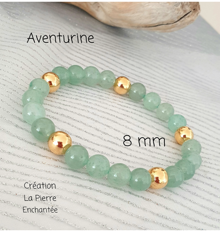 Aventurine 8 mm , finitions dorées – Sérénité et chance à votre poignet