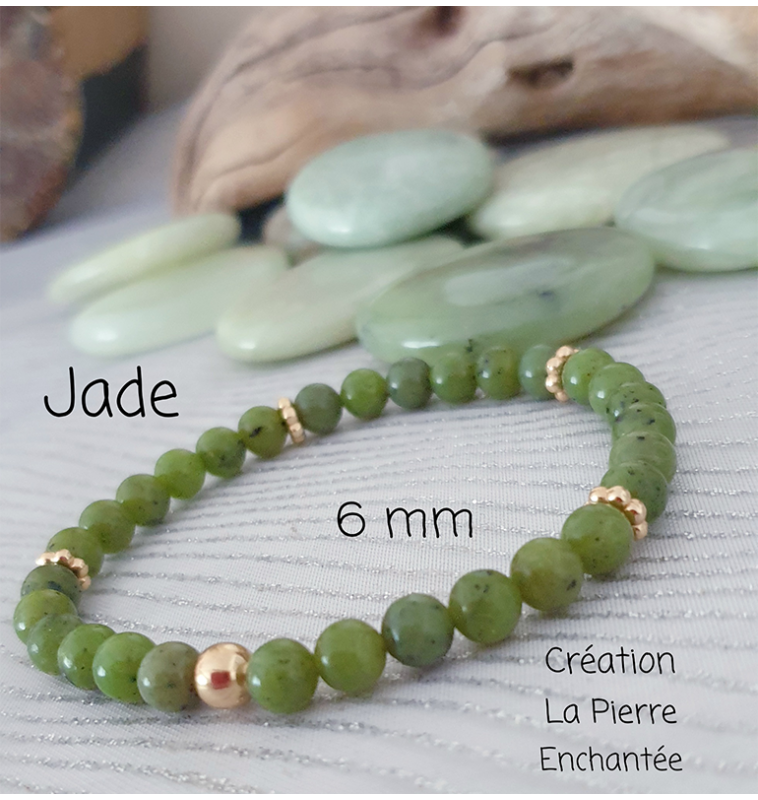 Bracelet en Jade, finitions dorées, perles 6 mm.