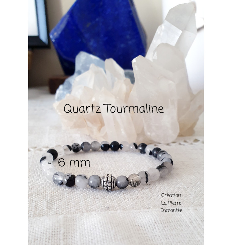 Bracelet en Quartz Tourmaline, perles 6 mm .