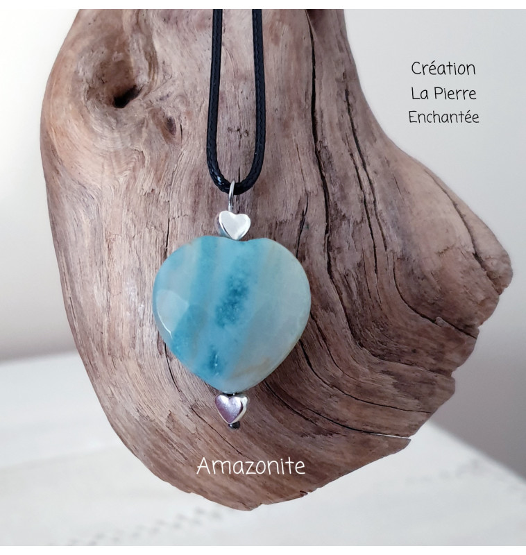L'Amazonite apporte bonheur, elle apaise les peurs et les craintes. Elle guérit et ouvre le chakra du cœur.