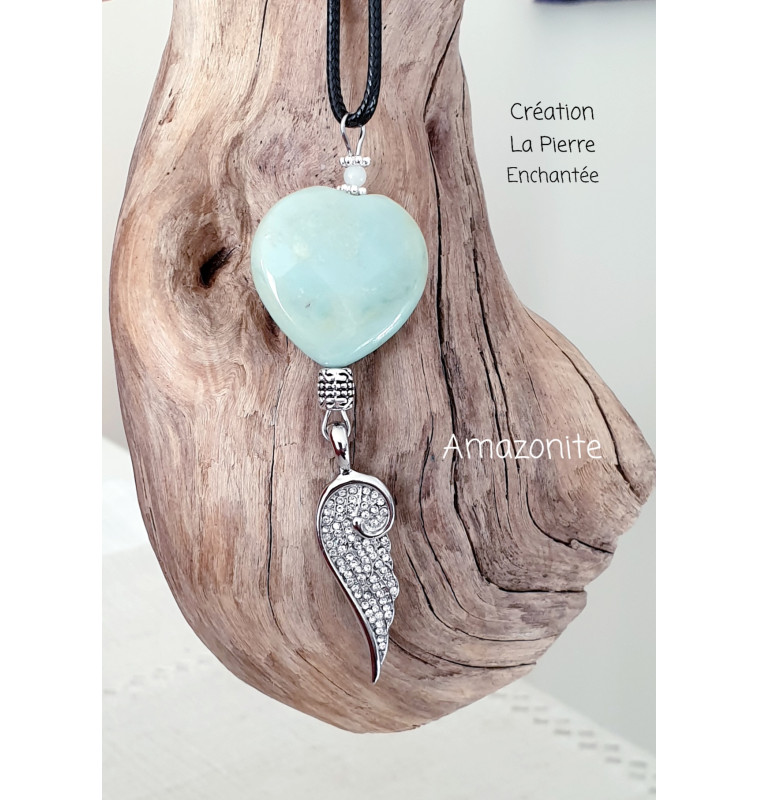 Amazonite pendentif cœur et aile D'Ange.