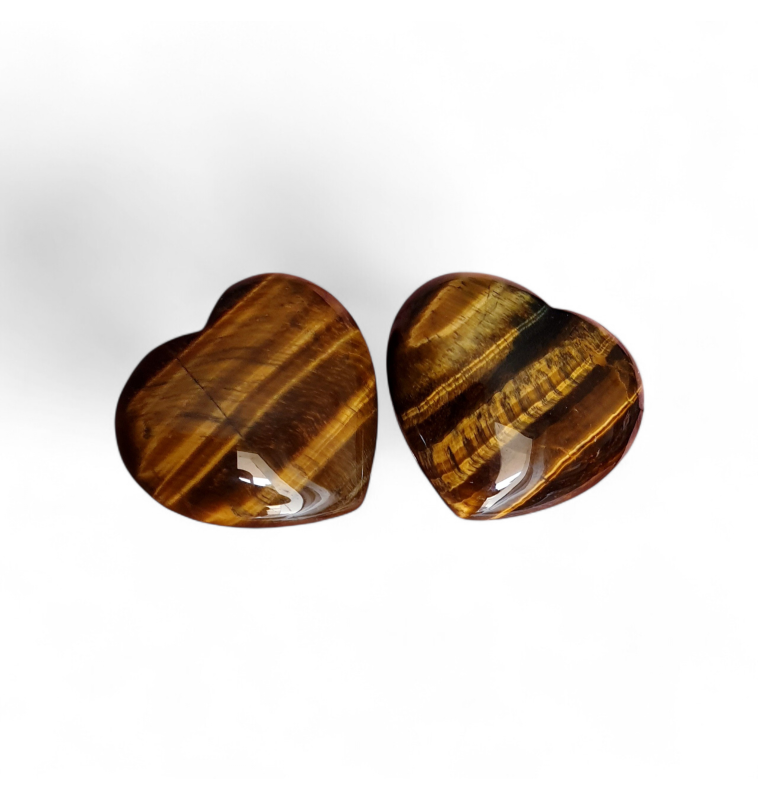 Laissez-vous séduire par la puissance chaleureuse de ce magnifique cœur en œil de tigre, une pierre aux reflets dorés et chatoyants, évoquant la lumière du soleil caressant la terre.