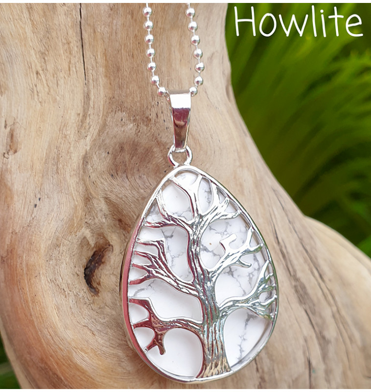 Howlite " Arbre de vie " pendentif en métal argenté .