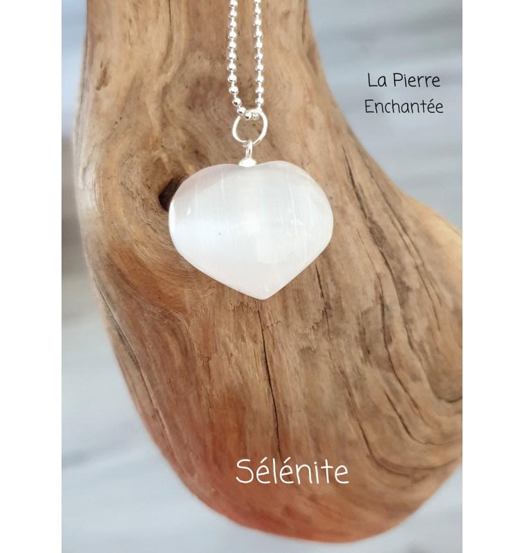 Sélénite pendentif coeur, éloigne les mauvais esprits et les énergies négatives.